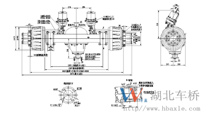 HT24N-122-4.11驅動橋總成由琵琶式整體式橋殼、主減速器總成、“S”凸輪、帶滾輪制動器總成、制動鼓及輪轂總成、全浮式半軸等件組成。它具有噪音低、運行平穩、安全系數高、制動性能好等優點。主要有以下特點: